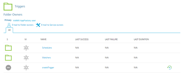 In the Triggers folder, click the build icon for the createTrigger job.