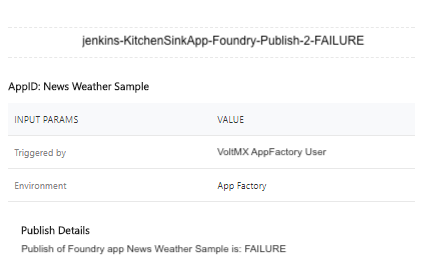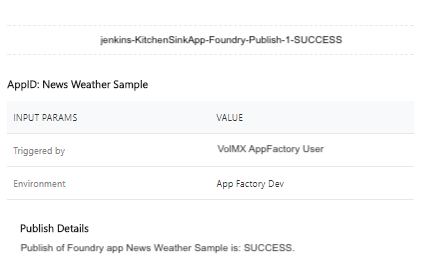 Publish job is responsible for publishing the existing Volt MX Foundry application to a specific environment.