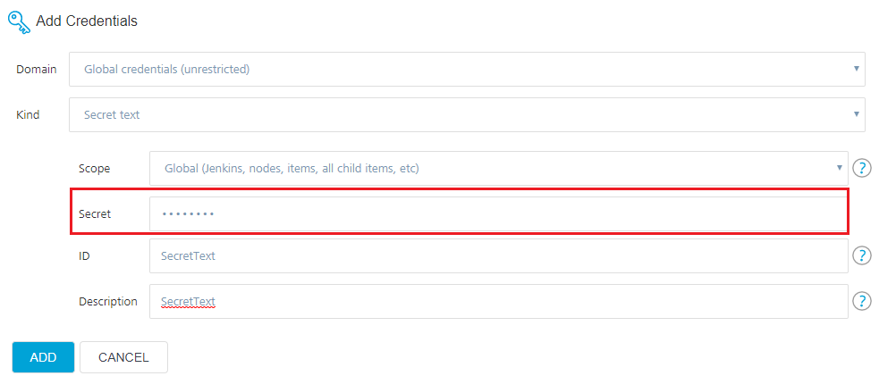 3. In the Add Credentials window, from the Kind list, select Secret Text.