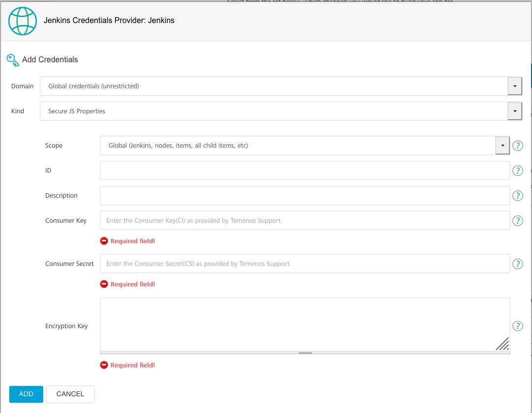 As teams typically use one set of protected mode keys across multiple apps, HCL recommends that you store this credential type in the Jenkins scope to share it across projects and to avoid creating unnecessary duplicates.