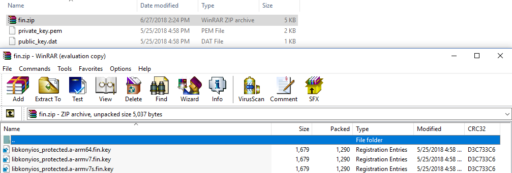 Fin Keys must be uploaded in a zip archive. The key files must be at the root of the zip archive, which must not have any sub-folder within the zip.