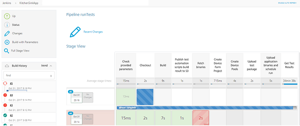 The builds that failed during the test can be tracked for the issues that caused the failure. For example, consider build #4 from the following screenshots of runTests job. To troubleshoot the issue, follow these steps.