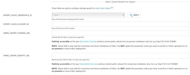 Foundry Cloud Details for Export - Used to configure the settings specific to Volt MX Foundry Export.