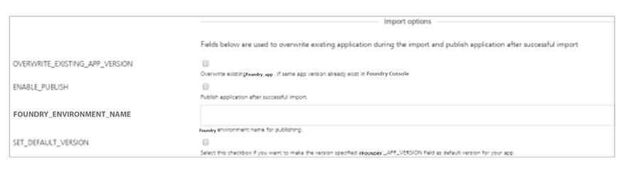 - SET_DEFAULT_VERSION - Select the check box to make the specified version in the FOUNDRY_APP_VERSION field as the default version for your app.