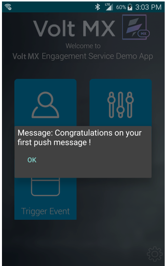 Now you have successfully installed the application and received the first push message. Next, we will send our first SMS message from the Engagement Services console to the application.