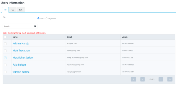 In the Adhoc section, select the Email Message channel. Click Next –Select Users to navigate to the next screen.