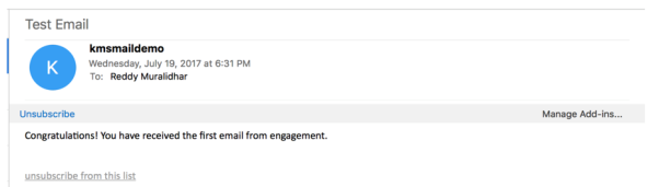 That’s it! Congratulations on your successful creation of the user and receiving your first email message from the Engagement Server.