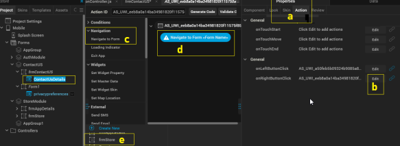 frmContactUs. By doing this, when you click the newly added widget on thefrmStoreform, thefrmContactUsform appears.You can build or preview the EAS App to view the customized results now.