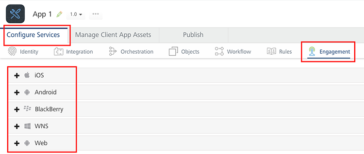 Engagement service allows you to upload push certificates for iOS, Android,and Windows 8 RT platforms.
