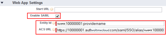 AssertionConsumerService URL. For example, https://100000001.auth.voltmxcloud.com/saml/SSO/alias/voltmx:100000001:providername?provider=provideernam