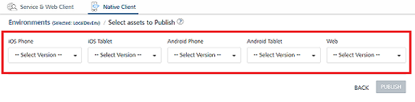 -- Select Version --from the drop-down list for platforms, and click Publish, the system removes all versions of that client binaries if present in Volt MX Management runtime.