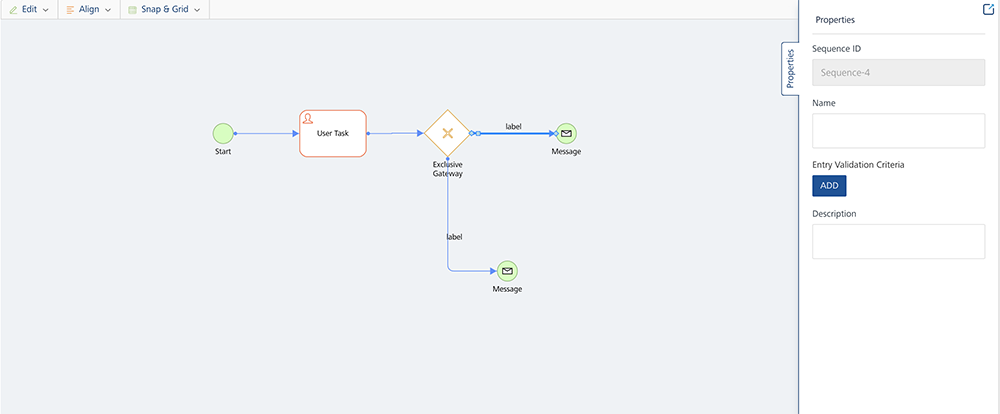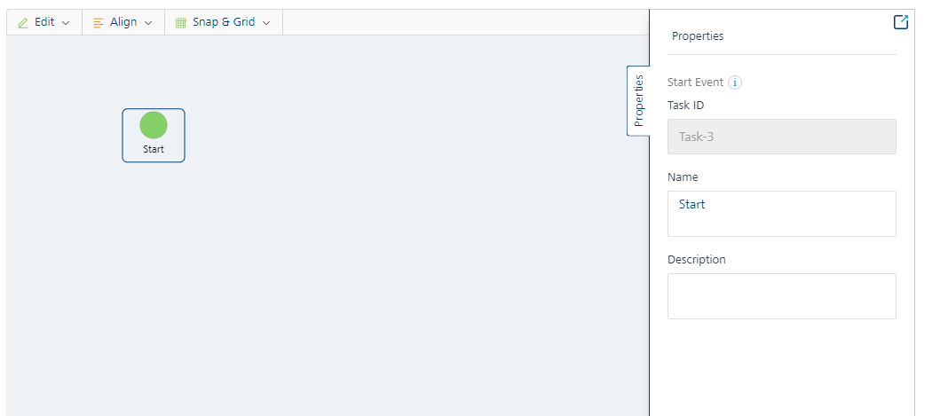 Note: A workflow should begin with a Signal Start event and finish with an End event for Event triggered workflow.