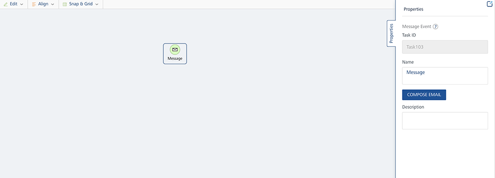 | Message Task – It represents an intermediate event through which you can send notifications to the required recipients. The recipient can be an end user or the manager of the concerned department. For example, if the loan approval is pending from the branch manager, then you can use the Message task to send the notification to the manager. |