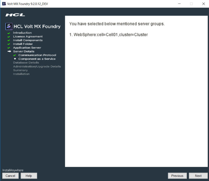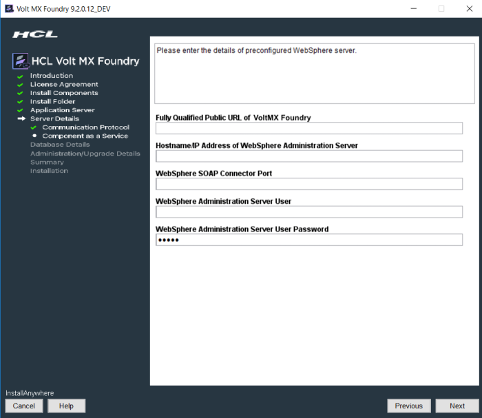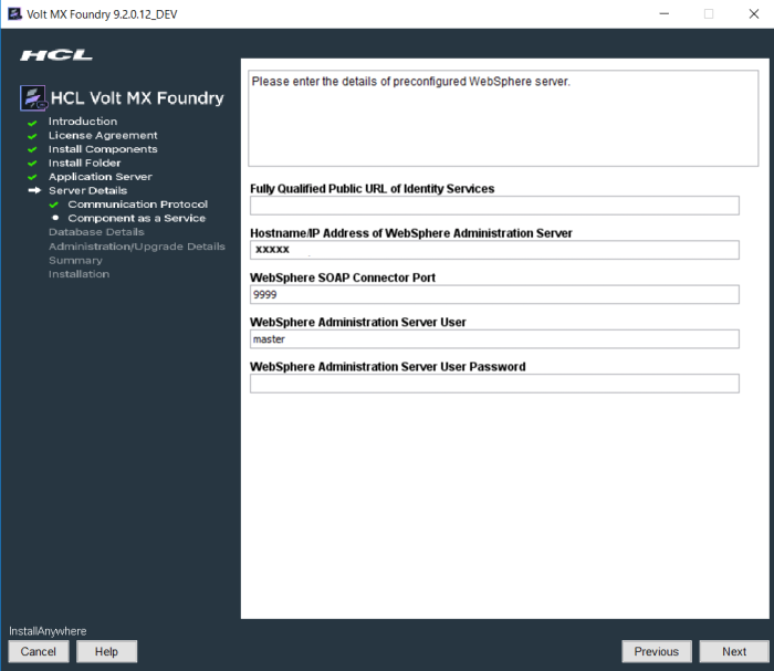 Click Next. In the Service Details window, enter the details for WebSphere.