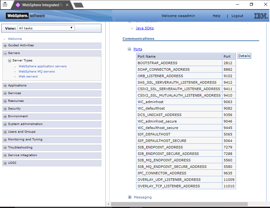 WebSphere Java Messaging Service (JMS) Port: Enter WebSphere-JMS port.
