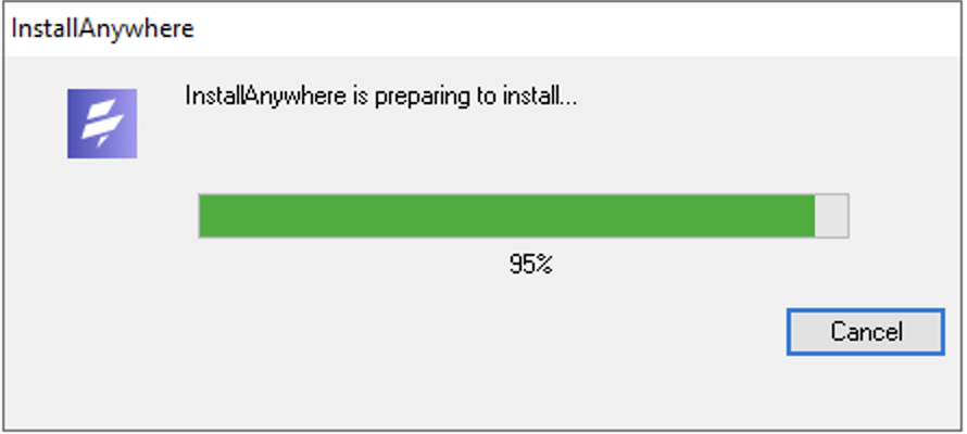The InstallAnywhere dialog appears and displays the progress of the launching the installer.