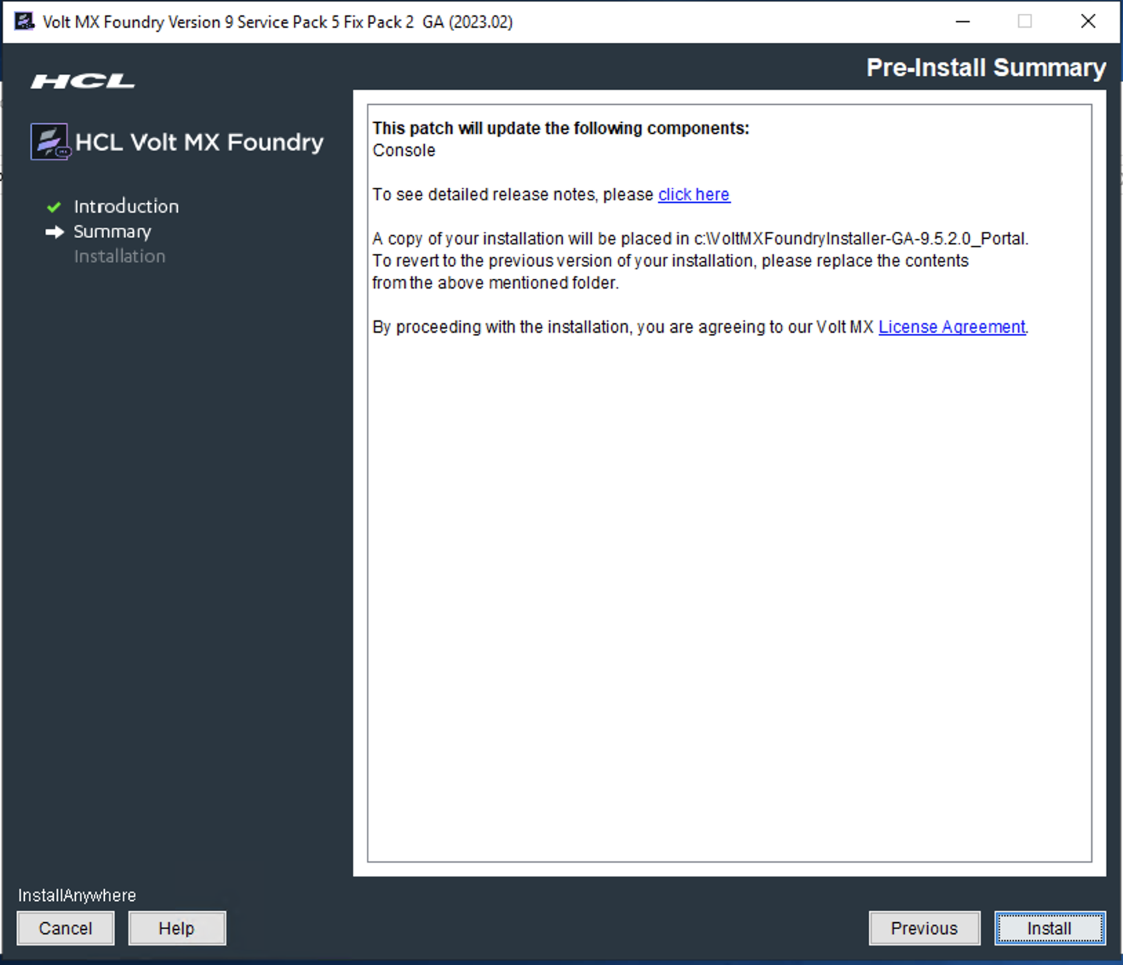 The Volt Foundry Patch Installer can be used to apply patches (software updates) to Volt Foundry components for a specific GA release.