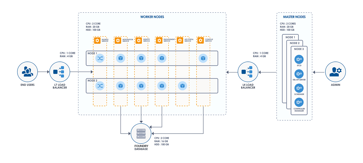 Following is the architecture diagram of the Volt MX Foundry Container Cluster Solution.