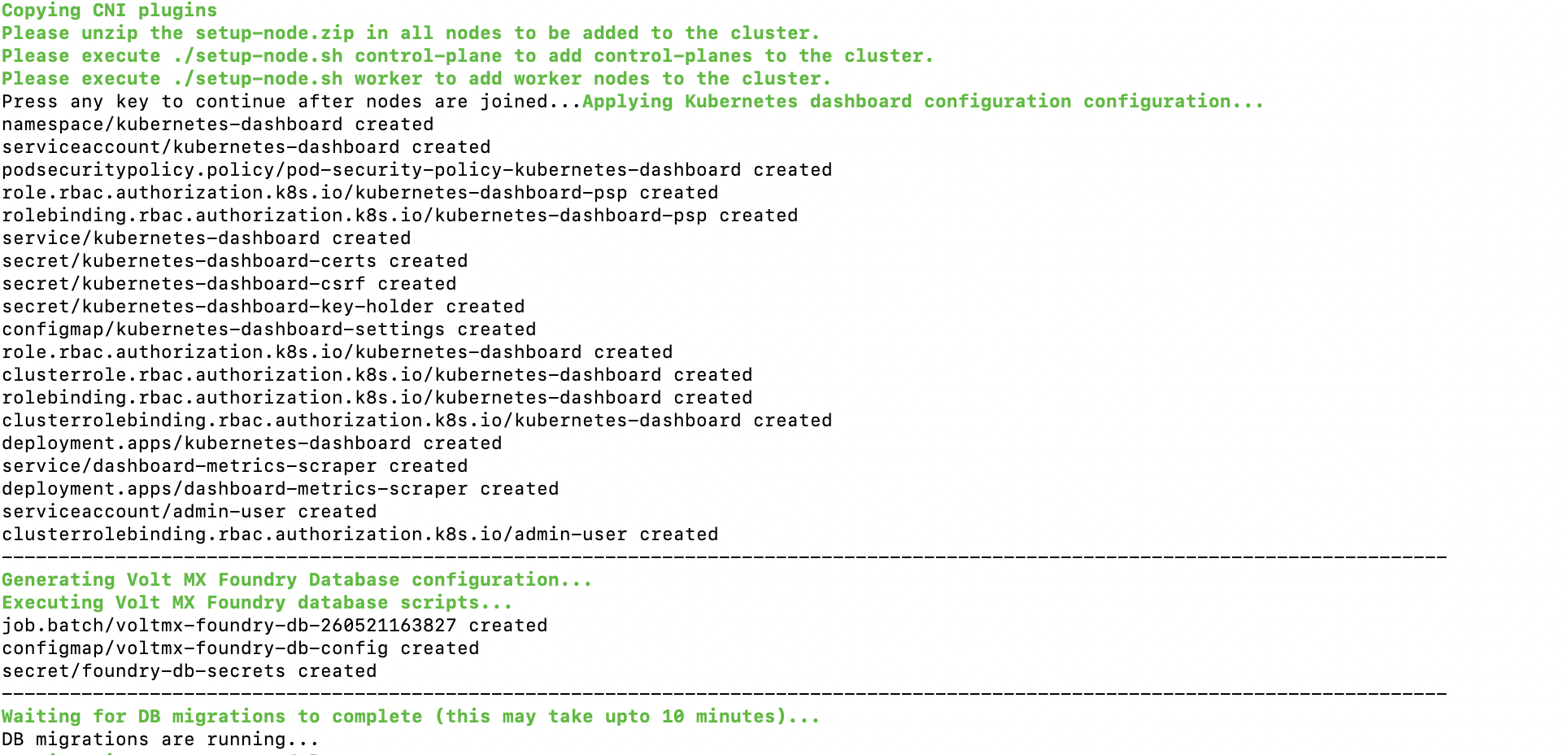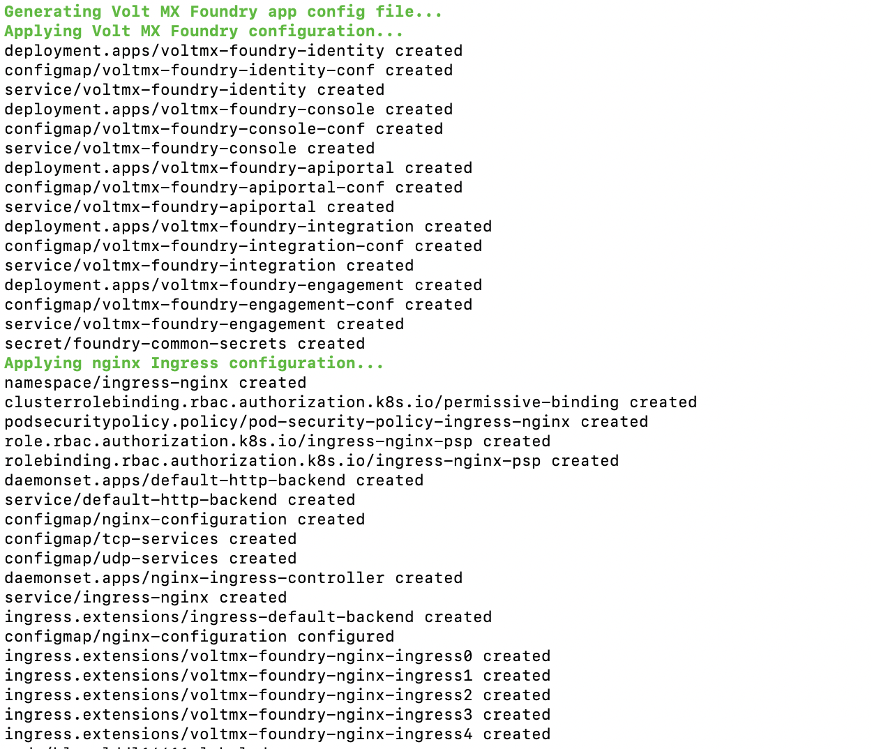 Run the Volt MX Foundry Container Cluster install script to generate and deploy Volt MX Foundry containers.