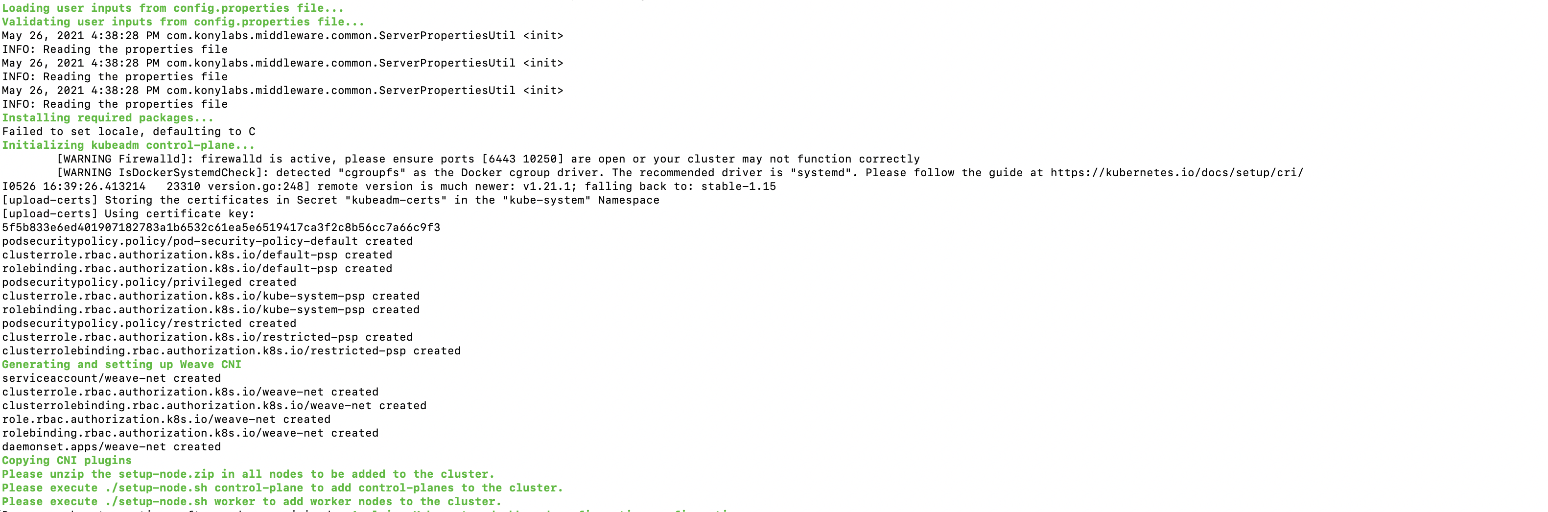 Run the following command to setup the master. It downloads and installs cluster packages, initializes kubeadm, sets up Weave CNI, generates token and waits for the worker node to join the master to proceed further.