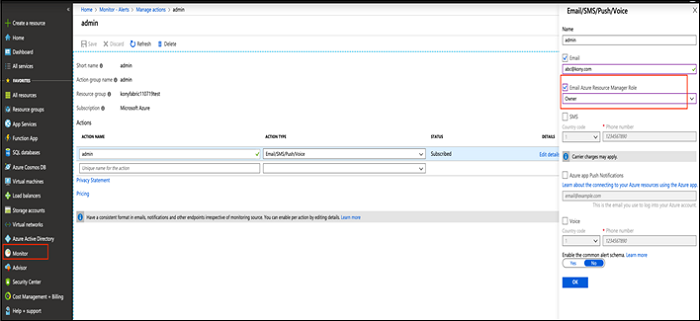 Yes, you can provide an additional email address for alert notifications. To do so, you need to select the Azure role to configure sending alert notifications in the Azure portal. Perform the following steps: