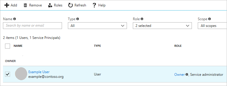 - View the roles assigned to you. In the following image, the user has the role of the Owner, which means that the user has adequate permissions.