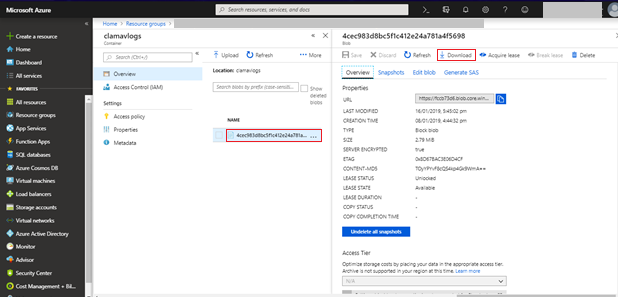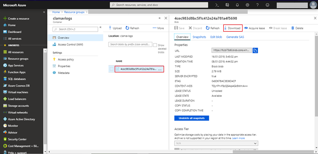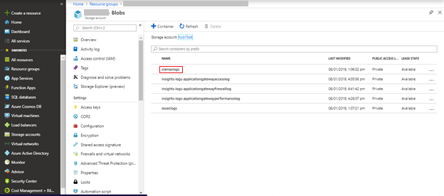 All the logs generated by CLAMAV are pushed to the Azure Storage Account.