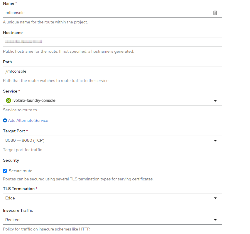 - Make sure that you use the same host name for all the Foundry routes that you plan to create.