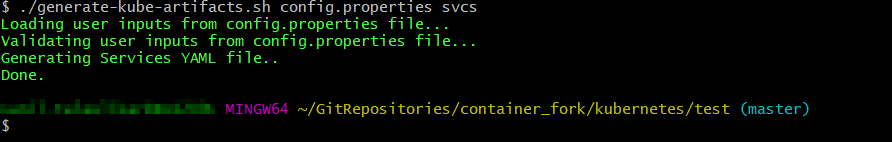 ./generate-kube-artifacts.sh config.properties svcsTo generate the services configuration, you only need to fill the