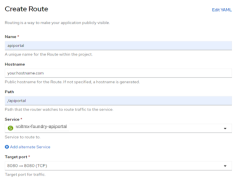 - For development or proof of concept, using HTTP (non-SSL) routes and OpenShift generated hostnames is a quick way to get started. Create the routes from the OpenShift console or by running the following command: