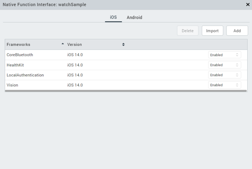 To enable Native Function APIs Volt MX Iris for iOS platform, follow these steps: