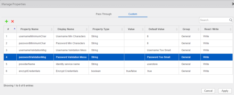 For example, you can specify which properties of the Login component are exposed to users by enabling them in the Manage Properties dialog box: