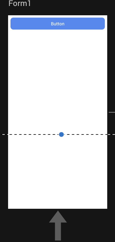When you create a project in Volt MX Iris, the Storyboard view is displayed by default, containing one form (as shown in the image). The arrow at the bottom of the form (here, Form1) indicates that this form is the startup screen or landing page of the app.