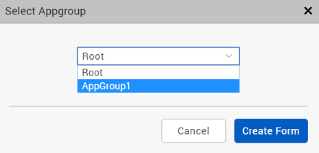 If a form is associated to an App Group, the name of the App Group is displayed by default with the form name in Storyboard view. Here, Form1 is associated to AppGroup1.