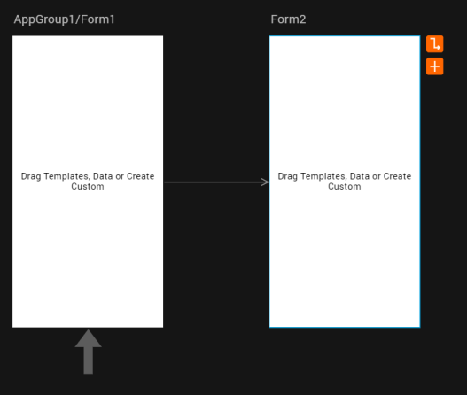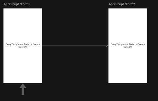 If you choose AppGroup1 and then click Create Form, a new form AppGroup1/Form2 appears with a navigation link connecting to Form1. In the Project Explorer, Form2 is displayed under Mobile > Forms > AppGroup1.