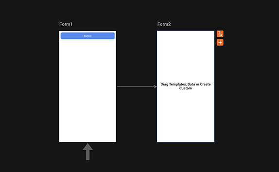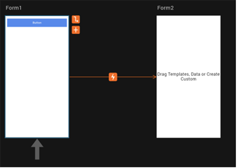 - Select Form2 as the form to be navigated to, and then click Ok. The onClick navigation action from Form1 to Form2 is added.
