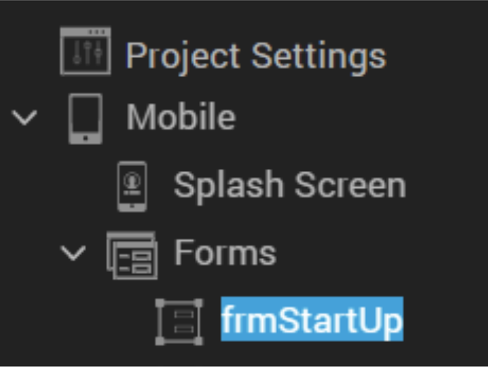 Mark as Startup: Right-click Form2, and then click Mark as Startup. Form2 is selected as the landing page of the app, and the arrow that indicates this appears under Form2.