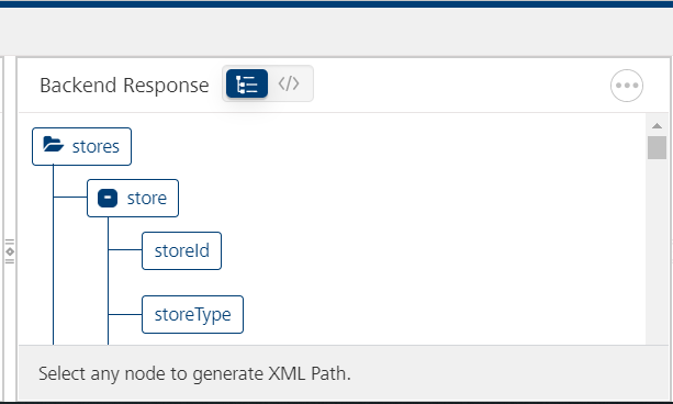 In the Backend Response section, you can view the back-end response as either raw data or in a tree format. Clicking an element on the tree displays the Xpath of that tag.