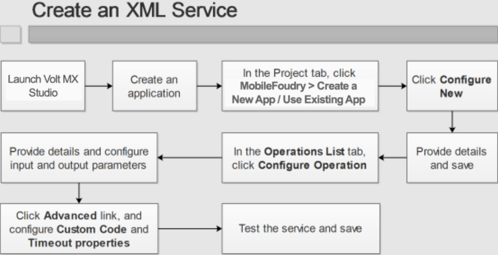 A service that communicates with an external data source using an XML data connector over the HTTP protocol is known as an XML service, and you can construct your application to use multiple XML web services from various sources that work together. Configured using the Volt MX Foundry Console, XML web services manages the interface between the requests of your app to an XML based data source and the data source's responses to those requests.