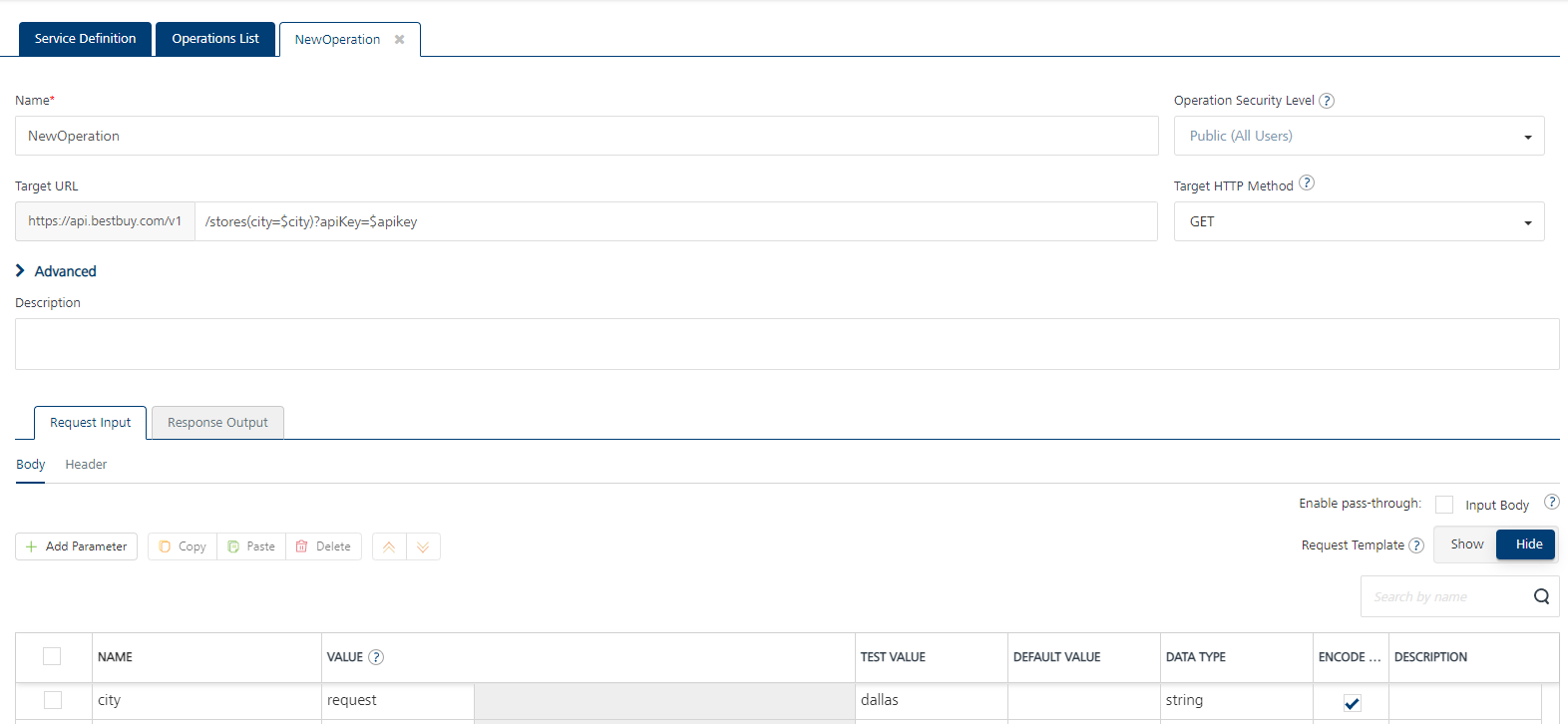 - Select a security level from the Operation Security Level list. By default, this field is set to Authenticated App User.
