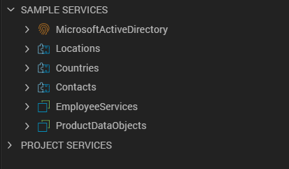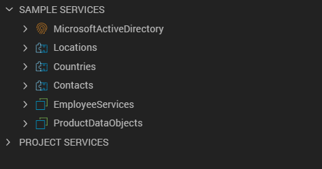 5. Once the service is created, it is displayed in the Project Services list. You can then directly drag and drop the service onto a form and start using it.