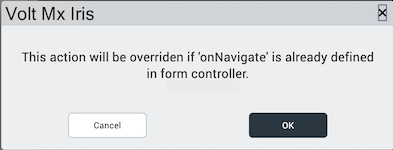 For the onNavigate Event, click Edit. A confirmation dialog box appears stating that if you have already defined the onNavigate Event in FormController, the current action will not be respected.