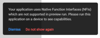 It does not support viewing the functionality of the NFIs/FFIs in your app. If your app contains an NFI or a FFI or any third-party library dependency an error message is displayed.