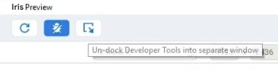 You can also open the debugger in a separate window by clicking on the Un-dock Developer Tools into separate window button on the upper-right corner of the Iris Preview window.