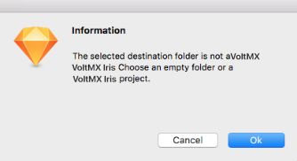When you have finished, click OK .Note: You must set the export destination of the Sketch project to a Volt MX Iris project folder or to an empty folder. You cannot export a Sketch project to a non-empty folder.