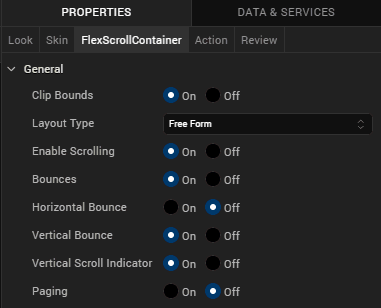 - From the Properties panel, navigate to the FlexScrollContainer tab.