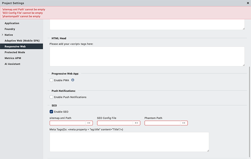 Implementing SEO in an Adaptive Web or Responsive Web app involves the following tasks. Once you have completed them, building the app optimizes it for search engines.