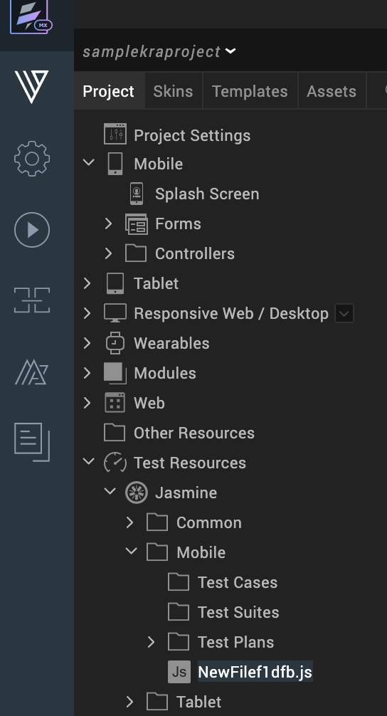 You will notice an auto generated script customReporter.js in the Common folder. The customReporter.js file contains several jasmine test reporting callbacks (jasmineStarted, suiteStarted, specStarted, specDone, suiteDone, and jasmineDone). Using the customReporter test script, you can configure where you want to export your test results. When you build any of your app, the file customReporter.js is added to mobile, tablet, and desktop web channel test folders.