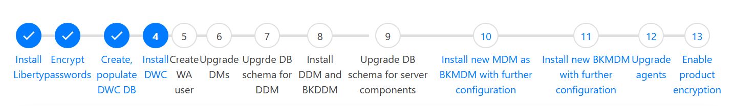 ./dwcinst.sh --acceptlicense yes --rdbmstype db_type --user dwc_admin_user --password dwc_pwd --dbname db_name --dbuser db_user --dbpassword db_pwd --dbhostname db_hostname --dbport db_port --wlpdir Liberty_installation_dir/wlp --sslkeysfolder certificate_files_path --sslpassword keystore_truststore_password