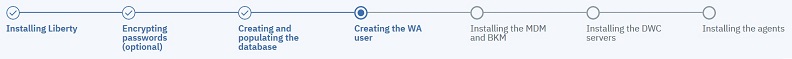 This picture describes the steps required for installing the full HCL Workload Automation software stack. You are now at step 4: creating the HCL Workload Automation administrative user.